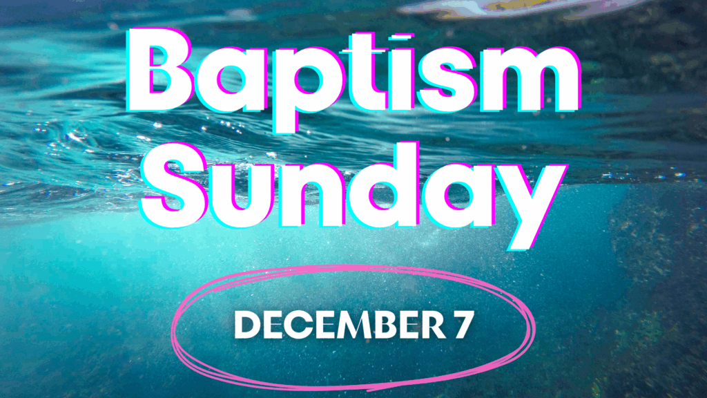 Join us December 7 for Baptism Sunday. If you are interested or have questions please TEXT: WATER to 256-472-8200
