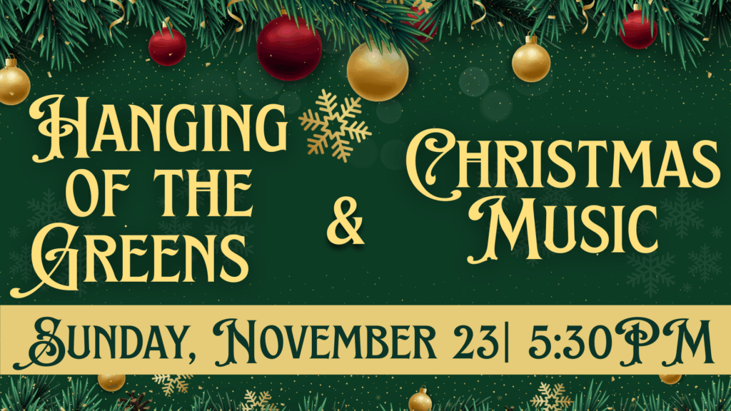Join us on Wednesday, November 23 @ 5:30 PM for our annual Hanging of the Greens along with our Christmas Music Special!